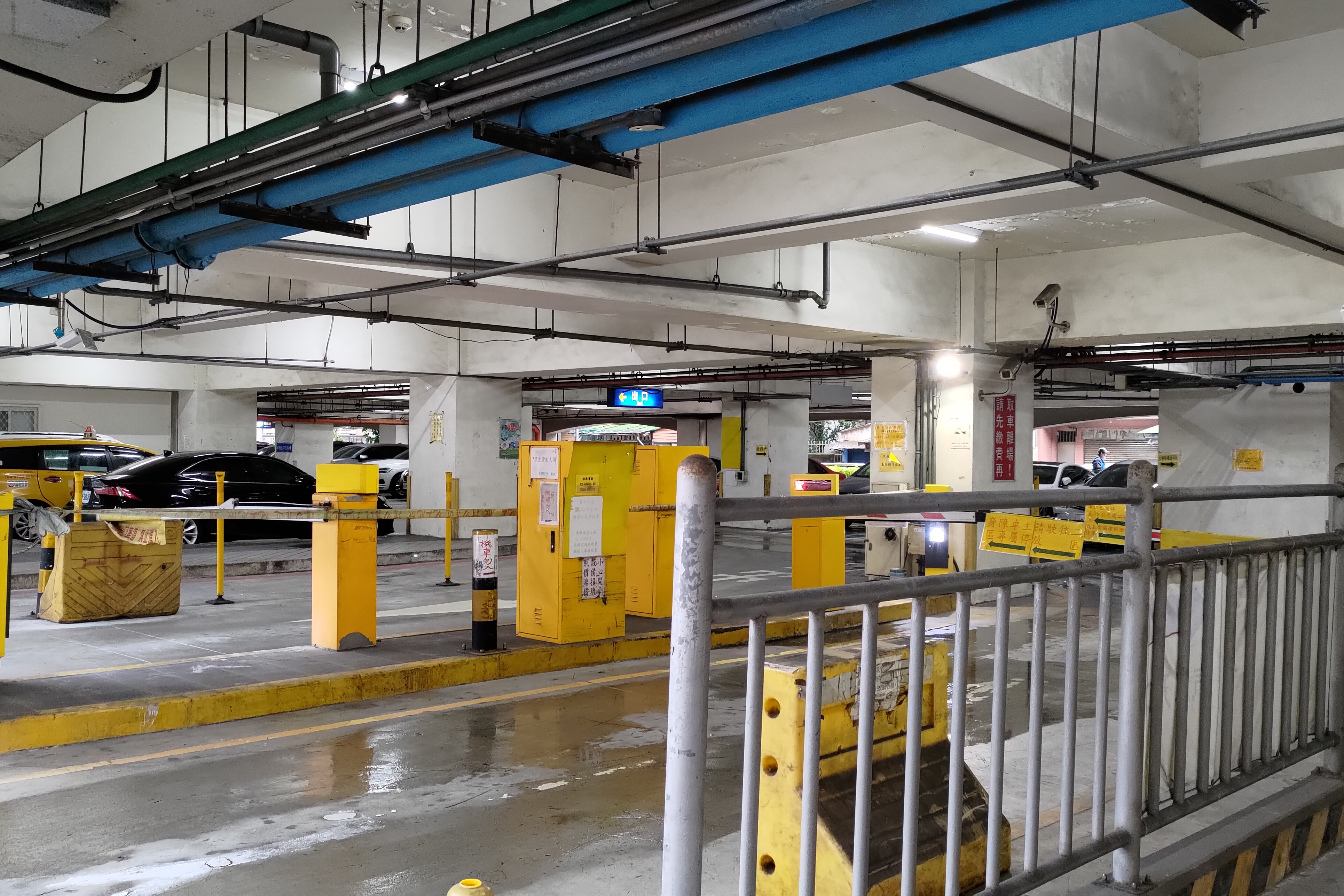 當然火車站不僅僅有這兩個出口,在車站中庭,有兩個樓梯可以向下通到汐止火車站的停車場。停車場位在高架鐵路下方,給那些開車來的人一個停車的空間,但因為汐止車站的乘客多以通勤族為主,雖然是很大的停車場,但使用率並不高。